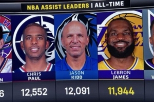 若要在本赛季超越基德,詹姆斯需打满剩余8场且场均18.4次助攻