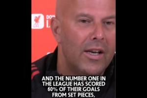 斯洛特表示:“如果你告诉我,我们40%的失球都来自定位球,而联赛第一60%的进球都来自定位球,但我们却只落后他们一分,我大概会觉得,‘这情况也没那么糟’。当然,对于一支志在竞争的球队而言,丢四个(定位)球显然太多了。”
