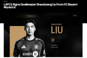 据美职联球队洛杉矶FC官方消息,俱乐部二队签下拜仁慕尼黑二队门将刘邵子洋。