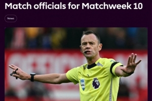 英超第10轮裁判安排