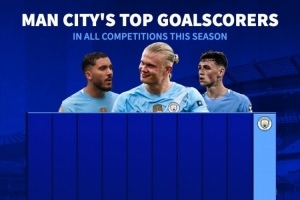 体育资讯11月6日讯 欧冠联赛阶段第四轮比赛,哈兰德破门,曼城主场4-1击败多特,德国转会市场列出了本赛季曼城队内射手榜,哈兰德18球居首,其他球员合计打进15球。