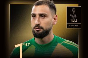 体育资讯9月23日讯 2025年金球奖颁奖典礼,26岁多纳鲁马获得雅辛奖,个人第二次获奖。