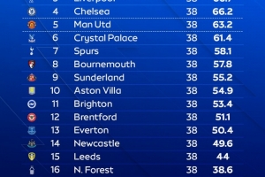 天空体育预测英超排名:阿森纳夺冠,曼城第二利物浦第三曼联第五