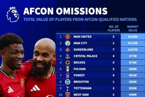 英超各队非洲杯球员身价榜:曼联、曼城前二位,枪手蓝军无人参赛