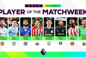 体育资讯12月2日讯 英超官方公布了第13轮最佳球员的八人候选名单,B费、福登、里斯·詹姆斯等人入选。