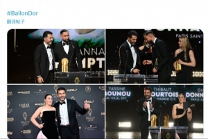 体育资讯9月23日讯 2025年金球奖颁奖典礼在法国巴黎的沙特莱剧院进行,布冯作为嘉宾颁发了雅辛奖。